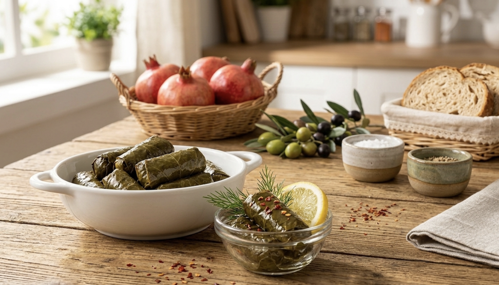 No Mediterranean picnic feels complete without dolmas—delicate vine leaves filled with fragrant rice and herbs. These bite-sized parcels are beloved across Greece and the Eastern Mediterranean for their bright, herbaceous flavor and satisfying texture.