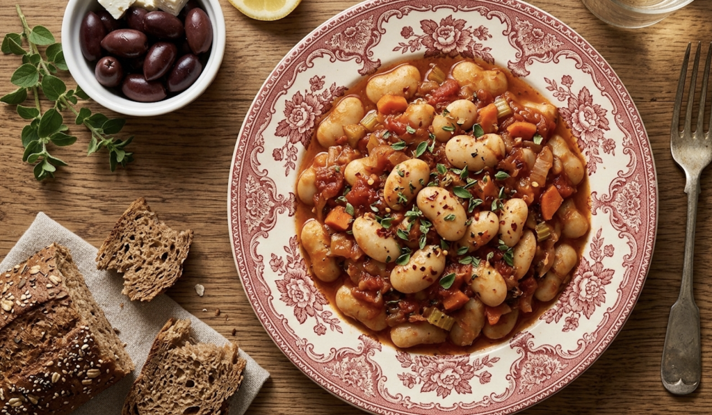 In Greece, giant beans—often called gigantes—are traditionally baked with tomatoes, onions, and herbs until tender and flavorful. Served with crusty bread, they become a deeply satisfying meal.