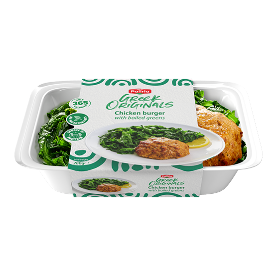 The Chicken Burger with Greens by Paliria is made with selected high quality ingredients, is high in protein, low in saturated fat and of course tastes amazing! The Chicken Burger with Greens is a perfect, filling and delicious meal, ideal for those who are careful about their health and weight and want to adopt a healthy, yet delicious diet. The Chicken Burger with Greens covers all of the above and has only 365 calories per serving. It also comes in individual portions, and as a ready-to-eat, refrigerated meal can be heated in a conventional or microwave oven. For all those reasons, the Chicken Burger with Greens by Paliria may justifiably be included in our weekly diet!