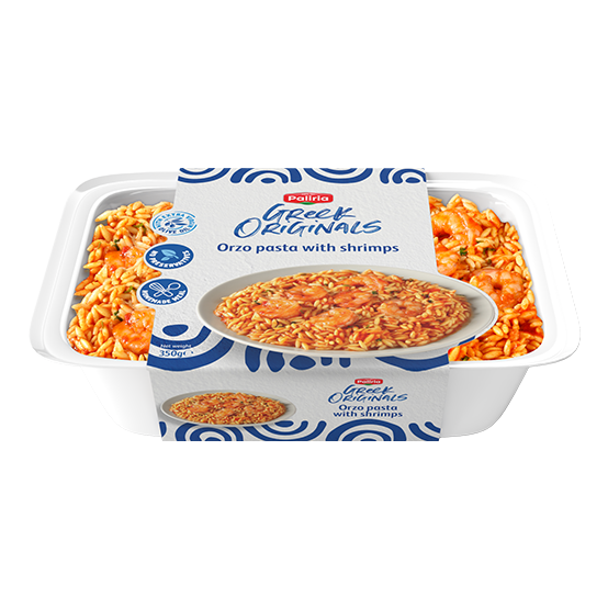 Orzo with shrimps is one of the most popular dishes of modern Greek cuisine. Paliria Orzo with Shrimps is the seafood variation of Giouvetsi, with the only difference being that the orzo is cooked in tomato sauce, until it becomes creamy, just like risotto is made. As for the delicious tomato sauce, it acquires its unique flavor from the shrimps, ouzo, extra virgin olive oil and herbs, flooding senses with the aroma of the sea. The best thing of all is that you only have to enjoy it, without doing much anything else! Paliria has created yet another dish with love and care, packaged in individual potions, that can be safely heated in a conventional or microwave oven.