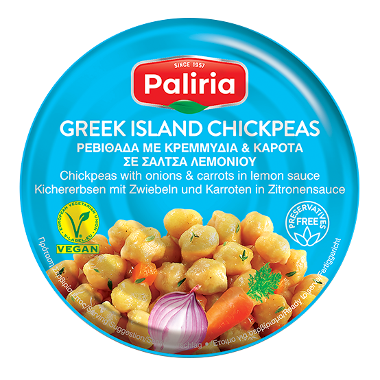 Opening Paliria Greek Island Chickpeas with onions and carrots in lemon sauce, it is like opening a traditional crockpot from Sifnos, releasing the unique aroma and taste of this iconic island recipe, with millions of fans around the world. The sweetness of onions and carrots meets the tartness of lemon in a thickened, harmonious flavor ensemble that makes Paliria’s Greek Island Chickpeas melt in your mouth. The Chickpea Soup from Sifnos became an inspiration for Paliria, that led to the creation of this incredible dish. These legumes have a lovely aroma and creamy texture and are a rich natural source of protein, vitamins, fiber and minerals, while they are a good alternative for those who avoid meat. Paliria Greek Island Chickpeas with onions and carrots in lemon sauce is a lovely authentically Greek, rich, hearty, delicious meal, reminiscent of a lunch table at grandma’s house.