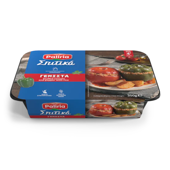 Τα Γεμιστά είναι ένας ακόμα αδιαφιλονίκητος παίκτης της κατηγορίας των παραδοσιακών, αυθεντικών, ελληνικών γεύσεων που αντιπροσωπεύουν τη χώρα μας στις κουζίνες όλου του κόσμου και κερδίζουν τις καρδιές των καταναλωτών, διεθνώς. Και σ’ αυτά η Paliria έχει φροντίσει όλη την προετοιμασία: να διαλέξει προσεκτικά και να αδειάσει επιμελώς τις κρουστές, φρέσκιες τομάτες και πιπεριές και μετά να τις γεμίσει μία μία με αρωματικό ρύζι που μαγειρεύεται με φρέσκα μυρωδικά και έξτρα παρθένο ελαιόλαδο. Τα Γεμιστά είναι ένα πραγματικά εμβληματικό, πεντανόστιμο καλοκαιρινό –κυρίως– πιάτο που δεν λείπει από κανένα σχεδόν εστιατόριο ή ταβέρνα της χώρας! Ταυτόχρονα, ένα τόσο κλασικό πιάτο όπως είναι τα γεμιστά, αποτελεί μια ιδανική χορτοφαγική επιλογή και ως μέλος της σειράς έτοιμων γευμάτων ψυγείου Paliria «Σπιτικά», είναι και άμεσα διαθέσιμη στον καταναλωτή, μέσα σε μεριδοποιημένες συσκευασίες, όποτε και να το θελήσει! Συνοδεύεται συνήθως από φέτα και ψωμί, ενώ η θερμοκρασία σερβιρίσματος είναι καθαρά θέμα προσωπικής προτίμησης, καθώς τα Γεμιστά τρώγονται από πολύ ζεστά, έως χλιαρά, ακόμα και εντελώς κρύα.