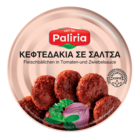 Τα κεφτεδάκια σε σάλτσα τομάτας & κρεμμυδιού είναι μια λιχουδιά με φανατικό κοινό σε όλες τις ηλικίες. Οι μαγείρισσες της Paliria γνωρίζουν καλά την τέχνη του να πλάθουν αφράτα κεφτεδάκια από εκλεκτό κιμά, αρωματισμένα με φρέσκια ρίγανη, μυρωδάτο δυόσμο και κύμινο, σε ιδανικές αναλογίες για ένα τέλειο μίγμα. Στη συνέχεια μαγειρεύουν τα κεφτεδάκια σε μια λαχταριστή σάλτσα τομάτας με μπόλικο κρεμμυδάκι, έτσι ώστε να ισορροπήσει αρμονικά ο συνδυασμός του κρέατος και των λαχανικών, στον οποίο κάθε υλικό συνεισφέρει τη μοναδικότητά του. Όποιος επιλέγει τα κεφτεδάκια σε σάλτσα τομάτας & κρεμμυδιού της Paliria καλείται έπειτα να αποφασίσει αν θα τα σερβίρει με ρύζι, τηγανιτές πατάτες, ζυμαρικά ή πουρέ. Ό,τι και να αποφασίσει κανείς, το σίγουρο είναι πως με τα κεφτεδάκια σε σάλτσα τομάτας & κρεμμυδιού Paliria απολαμβάνεις ένα λαχταριστό, χορταστικό πιάτο, από αυτά για τα οποία θα χρειαζόταν διαφορετικά πολύς χρόνος, μαγειρική δεξιότητα, μπόλικος κόπος και πολλά κατσαρολικά!