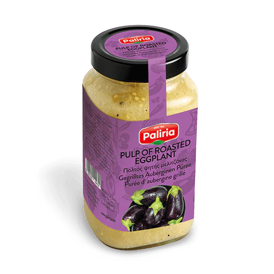 Ένας κρεμώδης, νόστιμος πολτός από ψητές μελιτζάνες. Διαλέγουμε φρέσκες μελιτζάνες υψηλής ποιότητας, τις ψήνουμε και τις ξεφλουδίζουμε προσεκτικά με το χέρι ώστε να δημιουργήσουμε έναν πολτό κατάλληλο για την παρασκευή ντιπ καθώς και για σειρά από σάλτσες.