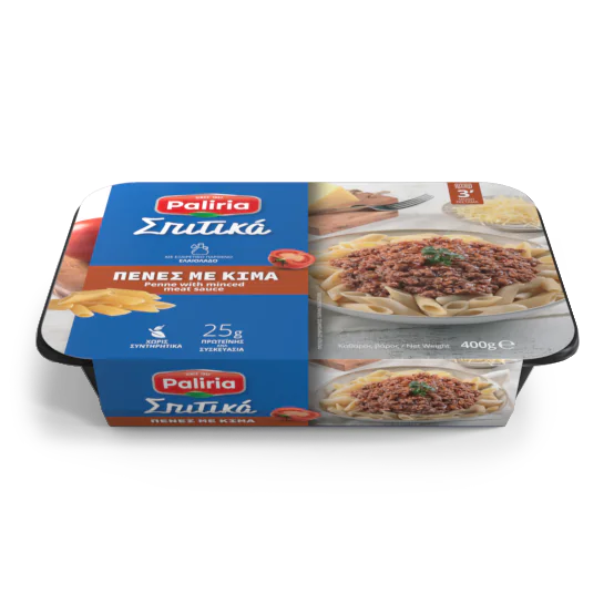 Οι Πένες με κιμά Paliria είναι η ιδανική λύση όταν έχουμε ξαφνικούς επισκέπτες ή φίλους των παιδιών στο σπίτι, καθώς δεν υπάρχει σχεδόν κανείς στον κόσμο που να μην λατρεύει αυτό το φαγητό! Έτοιμες μέσα στο ψυγείο, στις ατομικές συσκευασίες τους και γευστικά ακαταμάχητες, οι Πένες με κιμά της Paliria  είναι ένα απολαυστικό πιάτο από εκλεκτά ζυμαρικά πένες που συνδυάζονται με κιμά μαγειρεμένο με τομάτα, κρεμμύδι και μυρωδικά, και με έξτρα παρθένο ελαιόλαδο 0που κάνει τη διαφορά στη γεύση. Οι πένες με κιμά, ανήκουν στην κατηγορία των φαγητών που, ενώ θεωρούνται απλά στην προετοιμασία τους, έχουν τα δικά τους μυστικά που καθορίζουν την επιτυχία τους – από τα σωστά βρασμένα ζυμαρικά μέχρι το δέσιμο της σάλτσας και την σωστή χρήση των μυρωδικών ώστε να δώσουν το κατάλληλο βάθος στη γεύση. Ευτυχώς, οι έμπειρες μαγείρισσες στην Paliria, τα γνωρίζουν και έτσι μας προσφέρουν ένα ακόμα γεύμα, ετοιμασμένο με φροντίδα και μεράκι.